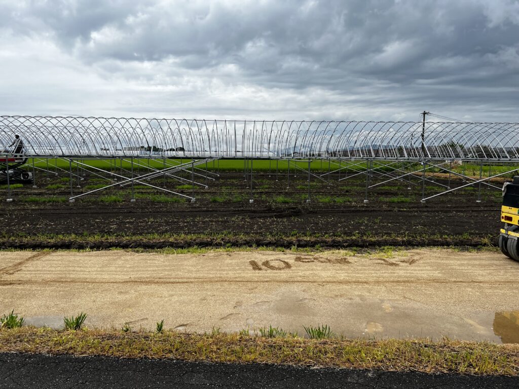 ついに本田(ほんでん)いちごの実を育てるハウスの建設が始まりました。